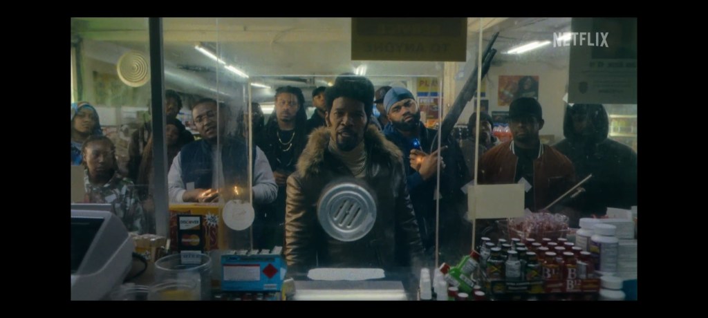 Fontaine (John Boyega) is a drug dealer in the lower-class neighborhood known as the Glenn. A regular working day for him involves beating up folks and collecting cash from the local pimp, Slick Charles (Foxx). However, Fontaine’s day doesn’t end well when he’s shot by another criminal, Isaac (J. Alphonse Nicholson). The next day, things get weird when Fontaine wakes up in his bed completely unharmed and oblivious. This disturbs Charles since he thinks Fontaine is a ghost, but soon the two associates and Charles’ “employee”, Yo-Yo (Teyonah Parris) try to find out what is going on. Surprisingly, they discover secret passages and underground lairs beneath their simple town, and even more surprising they find exact duplicates of Fontaine and others. They discover people in their town are being mind-controlled by compounds in their fried chicken, or songs they listen to, or the hair products they use, or juice they drink. Eventually a mysterious man named Nixon (Keifer Sutherland) lays out the stakes of the little bubble world they are in, and almost everyone that they know may be a clone that can easily be controlled.