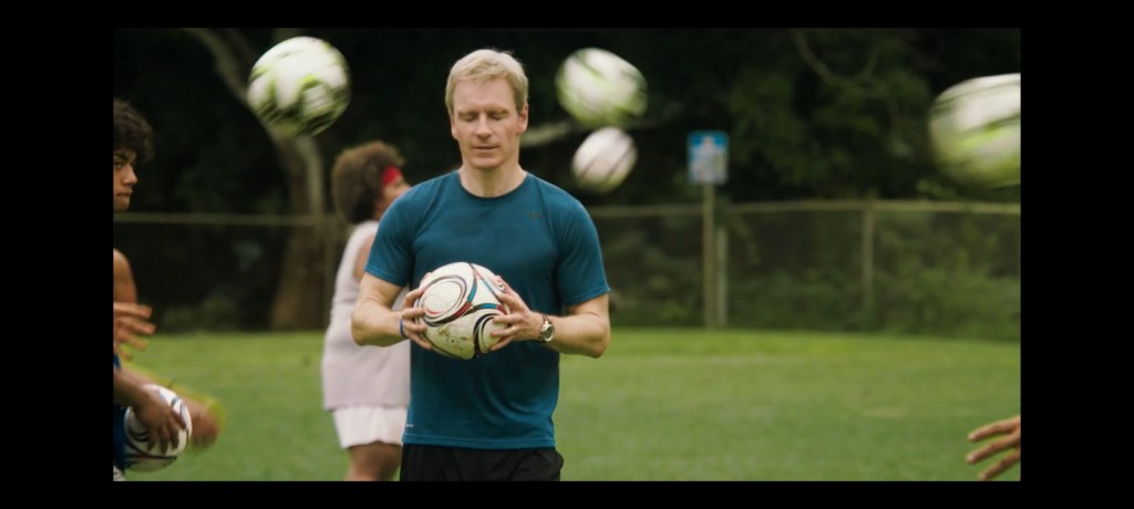 Thomas’s arrival at the island is also amusingly absurd as when he walks off the plane, he is immediately interviewed by a local TV show about who just stepped off the plane, and Thomas does the Liam Neeson “Special set of skills” monologue from Taken to explain why he is there. There is tension between Thomas and his ex-wife, and some saved voicemail messages from his unseen daughter, and the eventual reveal of what happened is very dramatic. Later in the Qualifying match, Thomas turns a corner with his outlook and says somewhat happily the team should enjoy themselves. This character arc isn’t anything stunningly new in a sports film, but Fassbender pulls it off admirably, managing to have a funny frustrated tone with some depth showing through.
