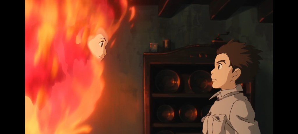 There is a sense of humour to extreme absurdity. In the “real world” the various old women bicker with each other over cigarettes as nicotine is a scarcity in World War II era Japan. In the new world, spirits rise to be born as new lives, but things look dicey when birds feast upon them. The floating ball spirit folks are very cute and it’s kind of horrifying when it looks like they’ll be burned or eaten alive. There is a lot of fire imagery in the film, befitting the fire trauma that Mahito underwent losing his mother. Fukuhara’s vocal performance as Himi has a lot of emotional depth and more revealed as it goes on. When the magical fire spirit reveals her connection to Mahito, it works well dramatically.
