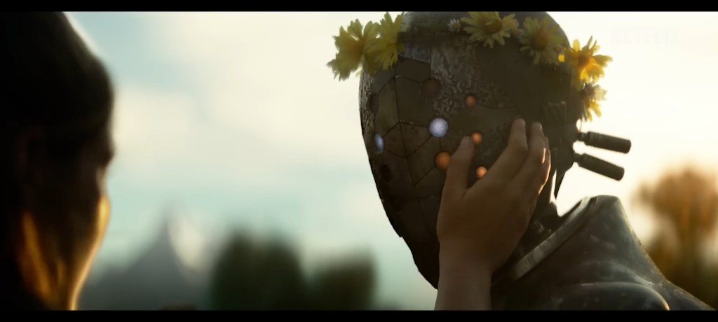 One of the movie’s coolest characters, a robot named Jimmy and voiced by Anthony Hopkins, is a pacifist robot that turns violent to save someone. There’s also a cool visual of Jimmy getting a crown of flowers to make him seem more human. After a big moment, he just disappears for the rest of the film until a shot at the end which is a shame because he’s the most interesting character. Apparently, there will be a four-hour long director’s cut in the future featuring more Jimmy. However, if one wants to experience two four-hour movies, maybe breaking it up into smaller chunks would be for the best.
