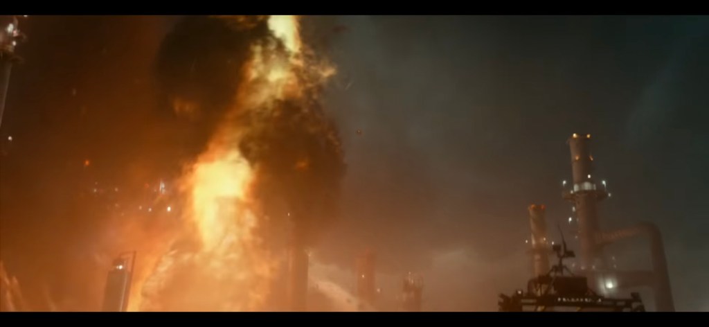 There are no direct references to characters from Twister. The closest it gets is when Kate and her friends want to scan the tornado, they use a bucket that shoots out scanning drones, the “Dorthy” gadget from the first film. As her friends are trying to get it to work, they complain that the ‘90s technology is “ancient”. One of Kate’s friends is played by Kiernan Shipka who has quite an extensive acting resume so it is kind of shocking to see how crazy her exit is from the film. Maybe they wanted a high-profile actor at the start of the film to get sucked away to up the stakes. But the opening chaos is quite good and very intense, which is another thing cribbed from the original where the heroine has a traumatic experience with a twister that informs the rest of their lives. The finale has a giant tornado tearing through an oil refinery and bearing down upon the characters while Kate takes the truck out to the middle of the storm to dissipate it. The characters are hiding out in a movie theatre that gets torn apart which feels like a callback to the original when a twister tore apart a drive-in. This series seems to have a thing for causing chaos to places that show movies. Makes it seem interactive.