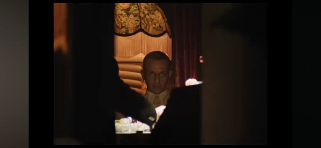 The title of the film, while also simultaneously a reference to Trump’s reality show, is also about the mentor and apprentice relationship between the impressionable Donald and the fixer Cohen. Strong is solid as Cohen, proudly proclaiming that people call him the devil and yelling one should never admit defeat. He doesn’t mind scaring people with underhanded legal tricks, saying he has been charged multiple times and nothing stuck. He is giving young Donald the various tricks of how to succeed, at one point giving him a bunch of alcohol Donald can’t handle. Cohen even proudly shows off his network of surveillance equipment he uses to catch people in compromising positions. He says one must do anything to protect democracy in America, saying he sent people to the death penalty for treason. He is an absolute bastard and Trump absorbs all of his teachings as an eager sponge, and by the end, years later, when talking to his Ghost Writer about the “Art” of the deal, Trump reiterates his master’s teachings, word for word.