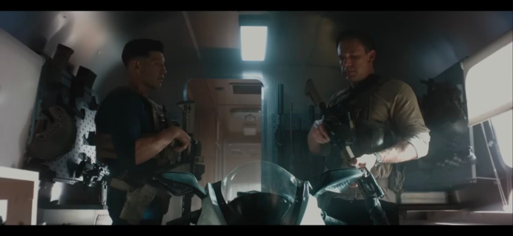 The best thing about the movie is seeing Affleck and Bernthal bounce off each other. If Christian keeps all of his feelings bottled up, then Braxxton always yells it. At one moment, Braxxton yells about how hard it was to look after Christian, saying how Christian came off as the “weird kid” and then he had to go kick some ass. Braxxton says he is happy to be alone but he is searching for companionship in a lot of ways, like a funny bit when he tries to get a puppy from the breeder earlier. Later, Christian sizes him up, saying that due to Braxxton’s odd work schedule, that Braxxton is more of a cat person.