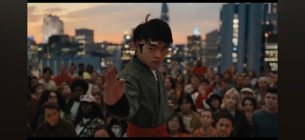 The title implies that it is an epic team up of these two elder masters, as Chan’s Han was the teacher in the 2010 film and Daniel became a teacher in the TV show, but their parts are supporting. Chan’s Han has a bigger role as he is related to Li and his mother, while the way Daniel gets into the story is a bit awkward as Han mentions that Mr. Miyagi told him about how good his student Daniel was. Chan and Machio training Li has some good laughs where they mercilessly smack him around. Even with just a few scenes together, Machio and Chan have dynamic banter. Chan’s character is from the 2010 film, but there isn’t a lot mentioned from that movie but there is a reference to taking a jacket on and off as a training exercise (which is really just a riff on the original film’s “Wax on, wax off” training exercise.)