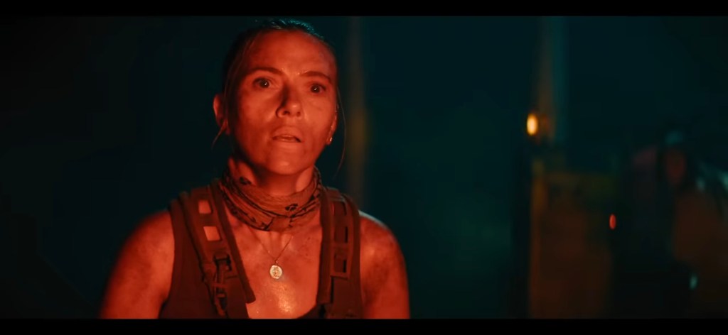 Dinosaurs have returned to Earth, but humanity’s world was toxic and most died or retreated to tropical areas (this is a quick and dirty retcon that undoes the “dinosaurs escape in our world” stuff that happened in the last two Jurassic World movies). Mercenary Zora (Scarlett Johansson) is approached by the money loving pharmaceutical businessman Krebs (Rupert Friend) to go to one of the abandoned research islands of InGen that made dinosaurs and retrieve DNA samples so they can patent and sell new (and very expensive) medicines. They bring paleontologist Loomis (Jonathan Bailey) and jump on the boat of soldier Kinkaid (Mahershala Ali) to dinosaur island. Along the way they find father Reuben (Manuel Garcia-Rulfo) and his family that were shipwrecked by passing water swimming dinosaurs. Now on the island and with various creatures wanting to eat them, and promptly separated from the family, Zora and her crew must retrieve the samples from some very large dinosaurs. But there are bigger and deformed mutated hybrid dinosaurs roaming the island, and Krebs wants to escape with the samples and make all the money, and he doesn’t care about leaving Zora and the family behind.
