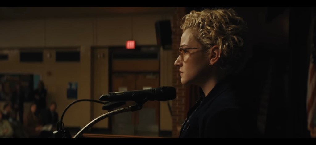 When seventeen kids run away in the middle of the night, it leaves the small town distraught. They all came from the same class, so the populace turns their ire towards the kid’s teacher, Justine (Juila Garner). Leading the accusatory charge is the grieving parent, Archer (Josh Brolin). The Principal, Marcus (Benedict Wong), tells Justine she needs to take some time off, especially since she is talking to the one kid who didn’t run off, Alex (Cary Christopher). Seeking solace, she gets into a situationship with the police officer, Paul (Alden Ehrenreich) but Paul isn’t the best companion, he’s trying to stay sober, his wife thinks he’s cheating on her (she’s right) and he keeps running into a local drug addict, James (Austin Abrams). These characters collide with the arrival of Alex’s incredibly weird and old Aunt Gladys (Amy Madigan) who is secretly manipulating all the citizens of this town.
